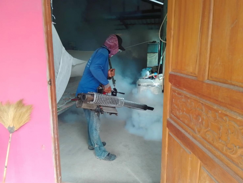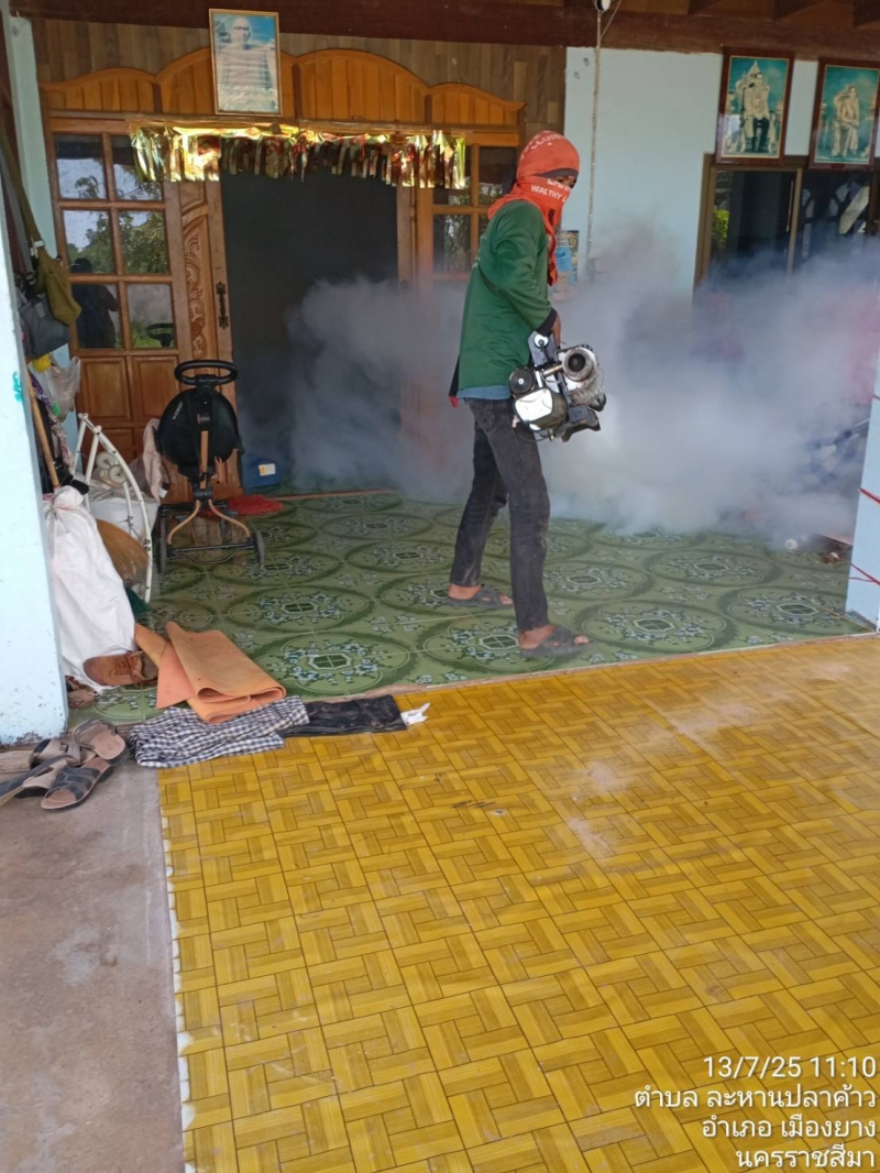 ได้มอบหมายให้เจ้าหน้าที่ อบต. ลงพื้นที่ฉีดพ่นหมอกควัน หมู่บ้าน วัด โรงเรียน ศูนย์พัฒนาเด็กเล็ก ในเขตตำบลละหานปลาค้าว